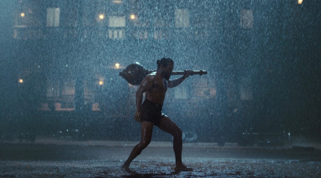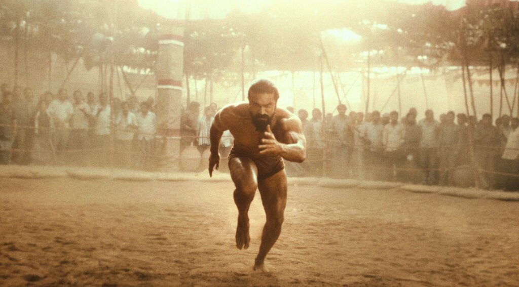 A key visual focus in Peddi is the sculpting of human presence, especially Ram Charan’s physicality.
