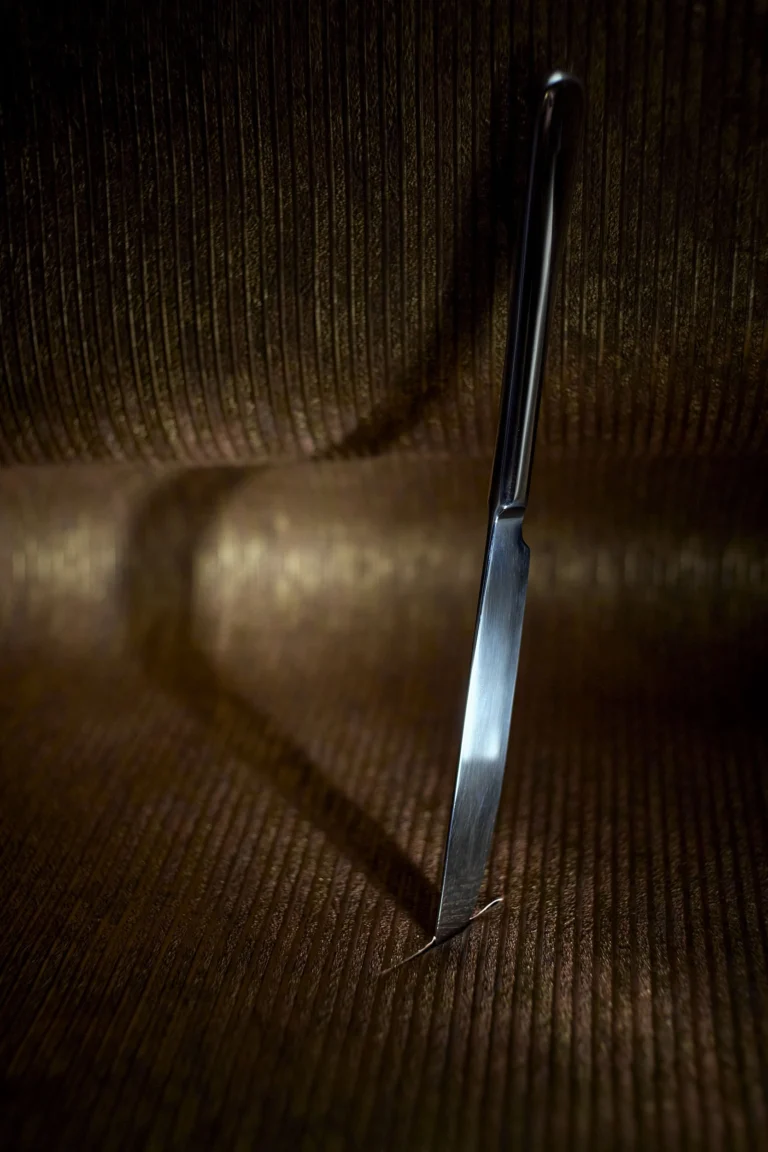 The metallic tray surface gives the image a lift as the light kicks off both the contrasting smooth metal and background texture. There are 2 images, identical in composition, just taken from a different angle. The higher angle demonstrates the drift, blur and ‘stretch’ of the detail towards the edges of the frame, whilst the lower angle brings the viewer closer into the dance of the subjects, making the image feel more intimate.
